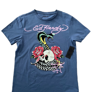 Ed Hardy Grey Splatter Skull Rose Print Tee ( L )