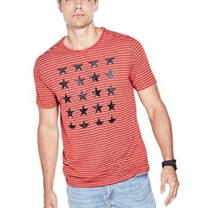 GUESS Lane Striped Stars Print Tee Bossa Nova Red / Orange Multi T-SHIRT ( XXL )