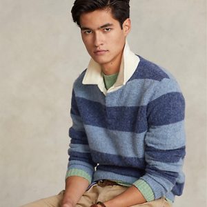 Polo Ralph Lauren Rugby Wool Stripe Collared Sweater Blue