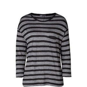 $140 VINCE. Striped Heather GREY Charcoal TOP Shirt 100% Viscose POCKET Tee (L)