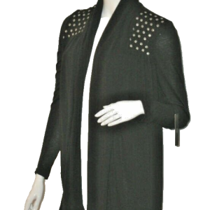 $140 BCBG Max Azria STUDDED Shoulder CARDIGAN BLACK Top ( M )