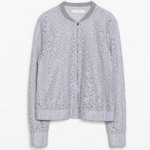 ZARA Lace FLORAL Light PASTEL Blue ZIP Lightweight BOMBER Jacket S