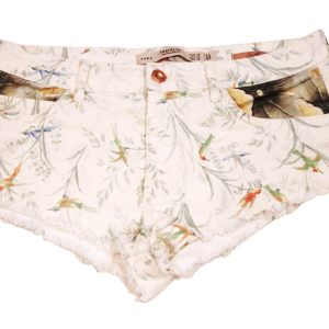 ZARA TRAFALUC Jeans SHORTS Bird print CUT OFFS Distress Trim 5-POCKET ( 6 )