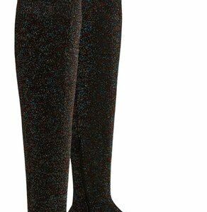 Zara Pointed Flat Over The Knee Boots Black Multi Glitter ( 6 )