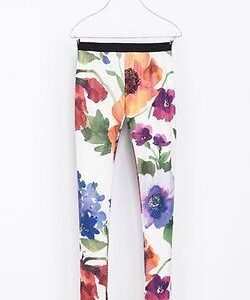 ZARA TRF COLLECTION White TROPICAL FLORAL Black Elastic WAIST Leggings STRETCHY