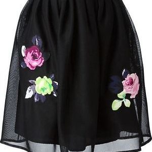 $325 CARVEN Net Overlay FLORAL EMBROIDERED Tulle SKIRT Black ( M )
