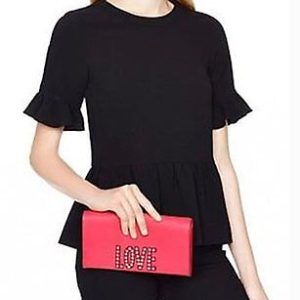 $298 KATE SPADE New York LOVE Birds TALLY Clutch Bag HANDBAG Saffiano Pink