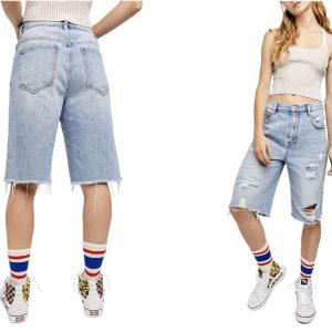 We the Free by Free People Ripped High Waist Denim Bermuda Shorts ( 24 )