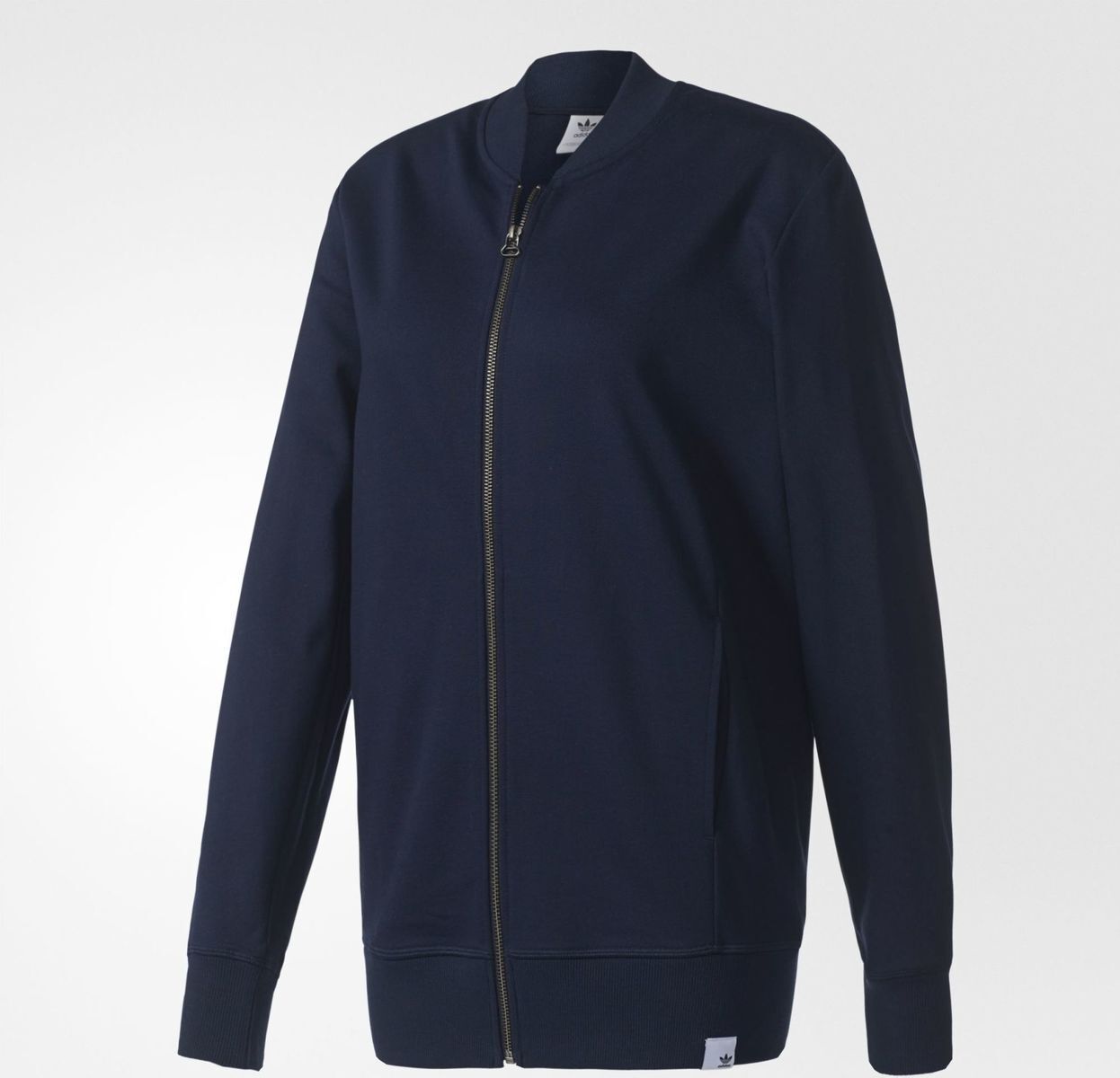 adidas Originals brings artisan craftsmanship to a sportswear basic to create a premium new wardrobe essential. Designed in collaboration with Japanese pattern maker Satomi Nakamura, this women's XbyO track jacket has a quiet, Zen-like simplicity. It features subtly curved cut lines for a soft, feminine silhouette. Made in Japanese-crafted Yamayo terry fabric for a substantial, luxurious feel. Detailed on the back with an unexpected reflective flash on the “X” print below the neck.