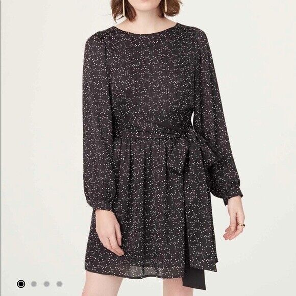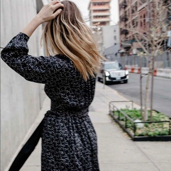 A pretty dress with an understated bird pattern and delicate pleated details feels just feminine enough. Wear with tights and tall boots all season long.