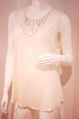 $195 HAUTE HIPPIE Swan CHAIN Necklace TOP Ivory MESH SLEEVELESS Modal ( L )