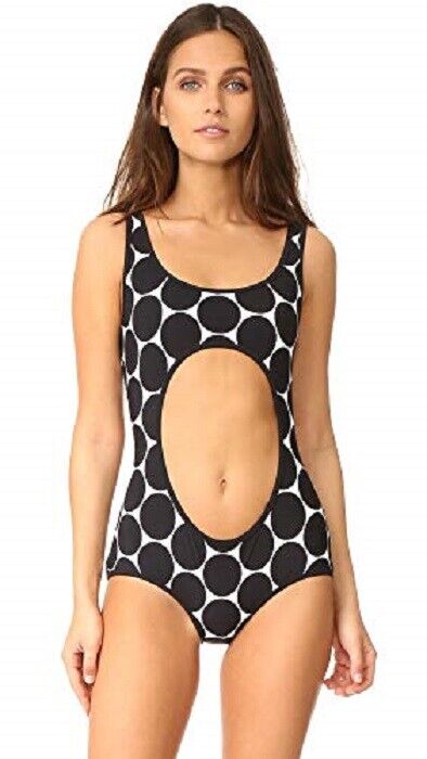 Bold cutouts at the front and back lend newness to this maillot, designed in a graphic dot print. Cut for a smooth, comfortable fit, it’s ideal poolside with a glamorous tote and sunnies.