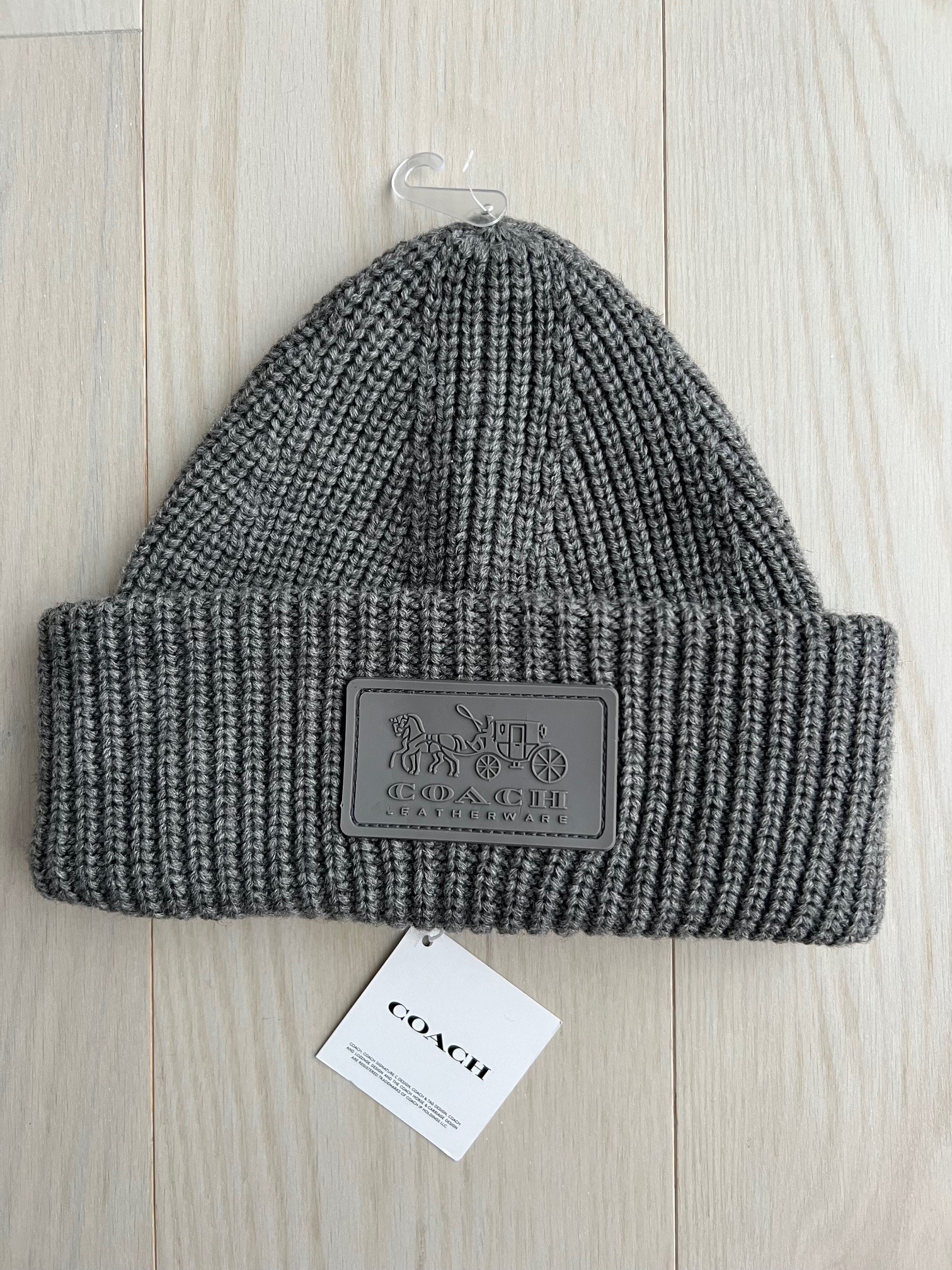/ Coach Patch Logo Rib Knit Cuff Beanie Hat Dove Grey