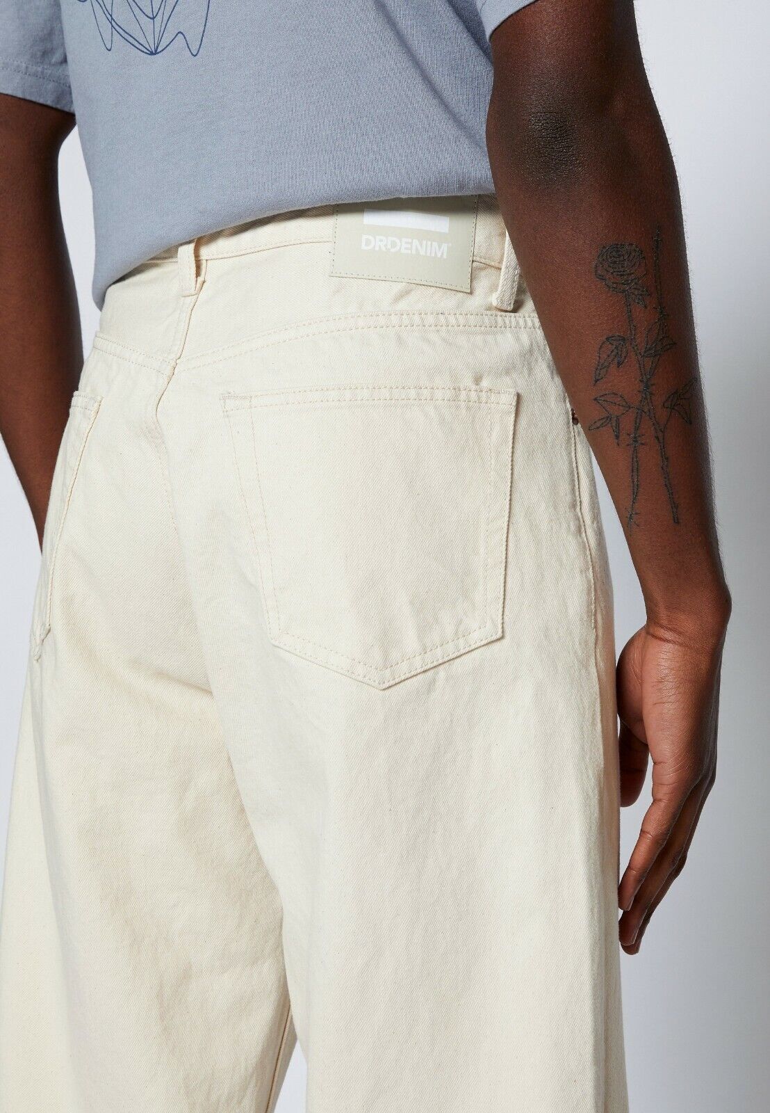 the natural colour and raw character of ecru denim- Loose, straight leg fit- 5-pocket design- 100% cotton