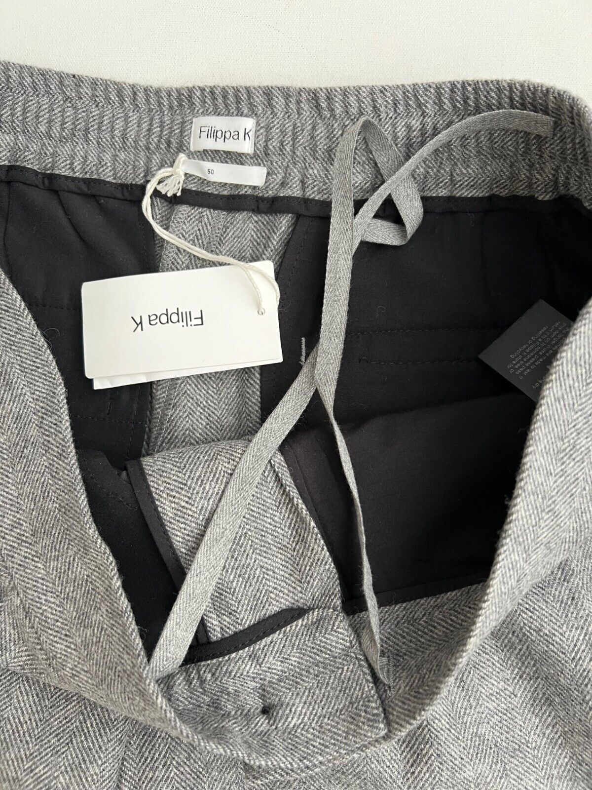 The Fabian Trouser from Filippa K is a looser fit pant with a wide leg. It features an elasticated waistband and drawstring and functional front fly. It has 2 side pockets and 2 rear pockets.