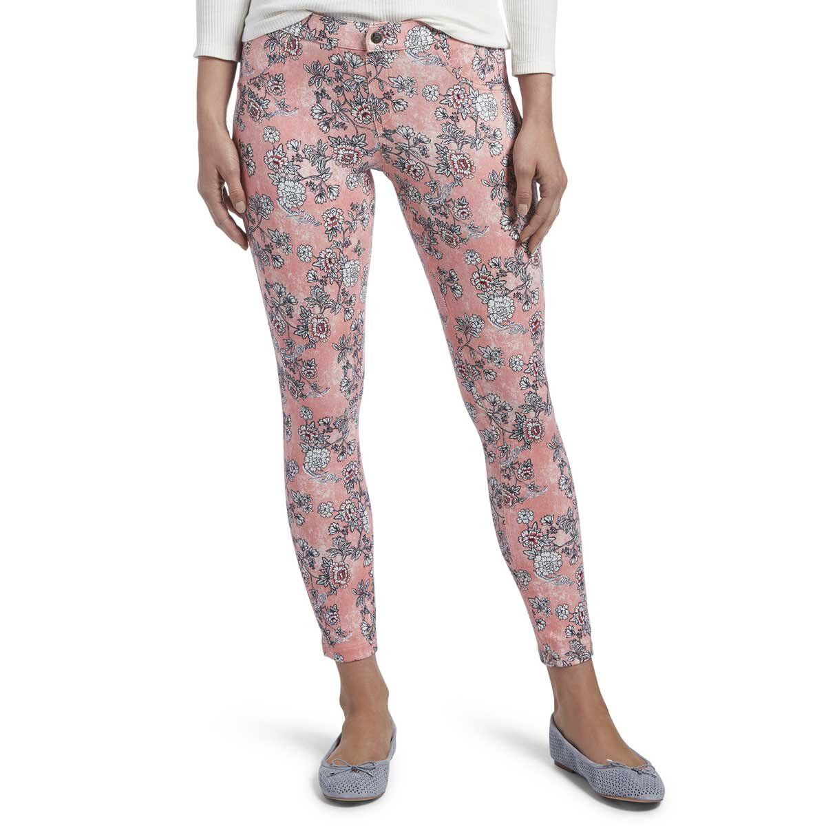 HUE U18745 Essential Denim SKIMMER Legging Jegging MINI FLORAL Coral Bliss (XS)