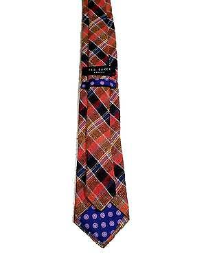 TED BAKER LONDON Plaid WOVEN ITALIAN Silk NECKWEAR Tie ORANGE Multicolor
