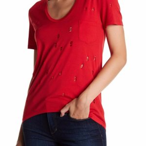 $118 JOE’S JEANS Gilles SILK Blend TEE SHIRT Pocket TOP Distressed CUTOUT ( S )