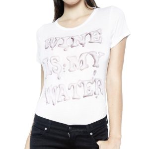 $125 LAUREN MOSHI Janie Tee Shirt Top WINE IS MY WATER White ( XS )
