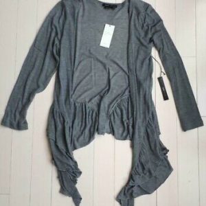 $140 BCBG MAX AZRIA Delicate GREY Lightweight RUFFLED Hem CARDIGAN ( S )